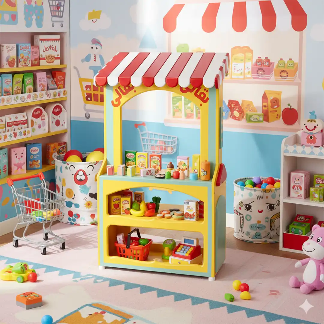 در این بازی کودک نقش فروشنده را بر عهده میگیرد، اجناس را میچیند، با دوستانش معامله میکند و حساب و کتاب یاد میگیرد. این تجربهی جذاب، نهتنها باعث افزایش اعتمادبهنفس میشود بلکه زمینهساز رشد تفکر اقتصادی و هوش ریاضی در کودکان است.