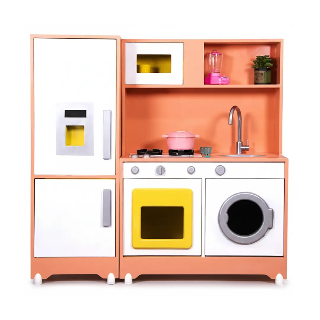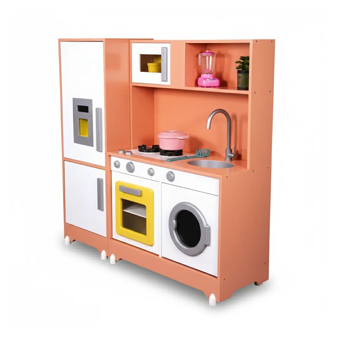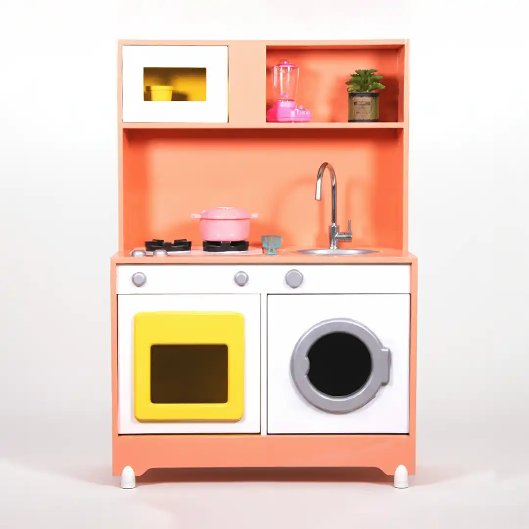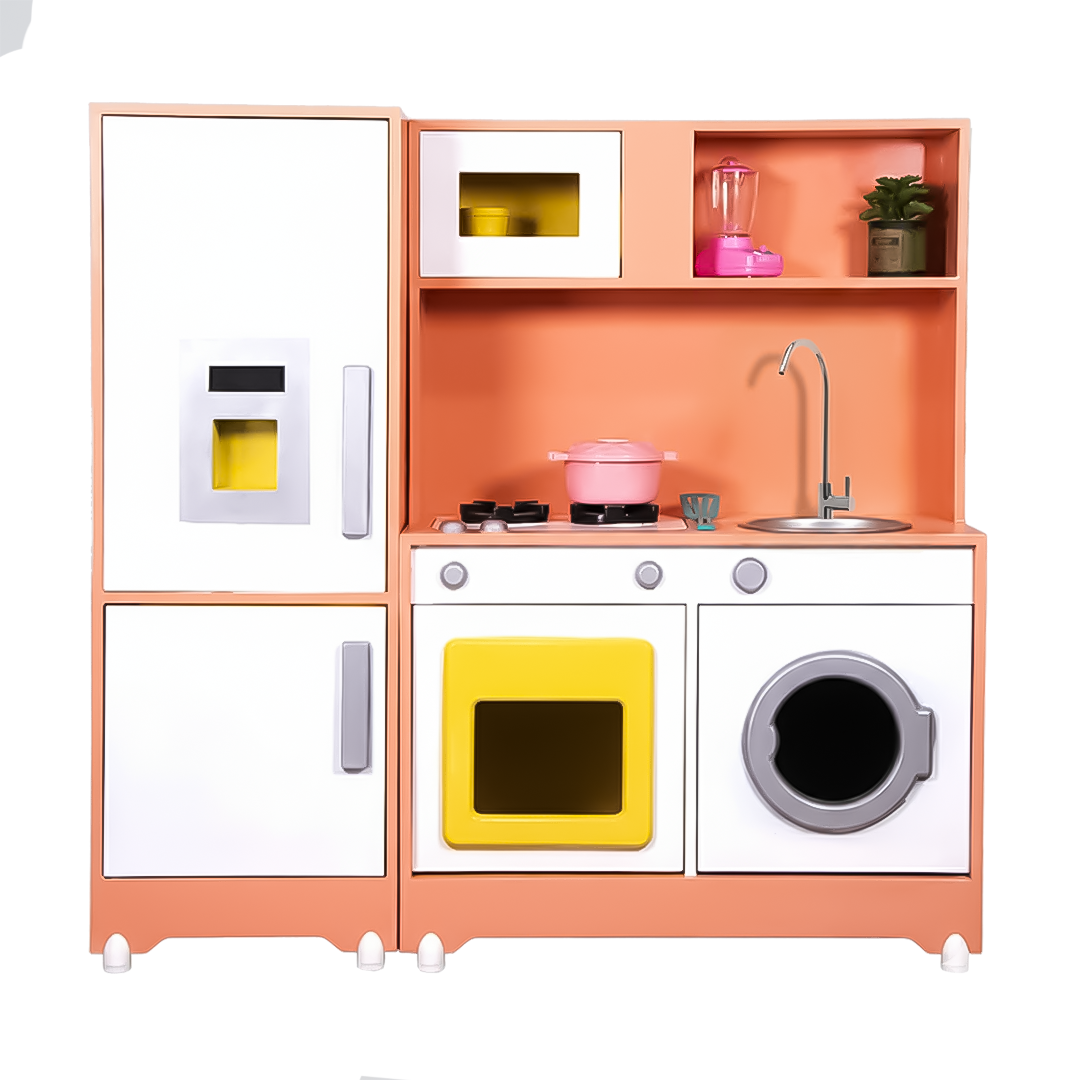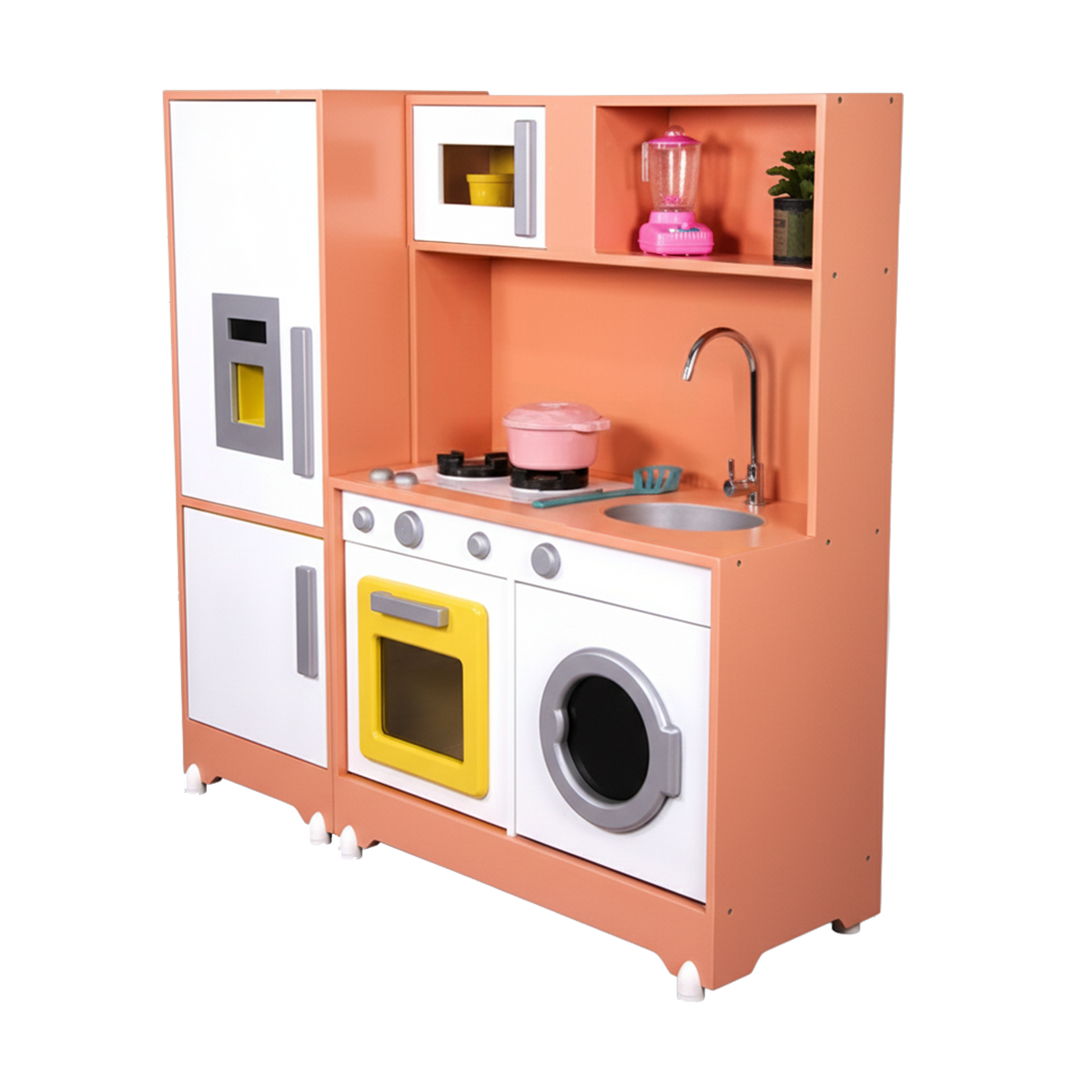 این مجموعه با طراحی جذاب و جزئیات دقیق شامل سینک ظرفشویی، یخچال، اجاق گاز، فر و ماشین لباسشویی است تا کودکان بتوانند در قالب بازی، مهارتهای روزمره و کار گروهی را بیاموزند.