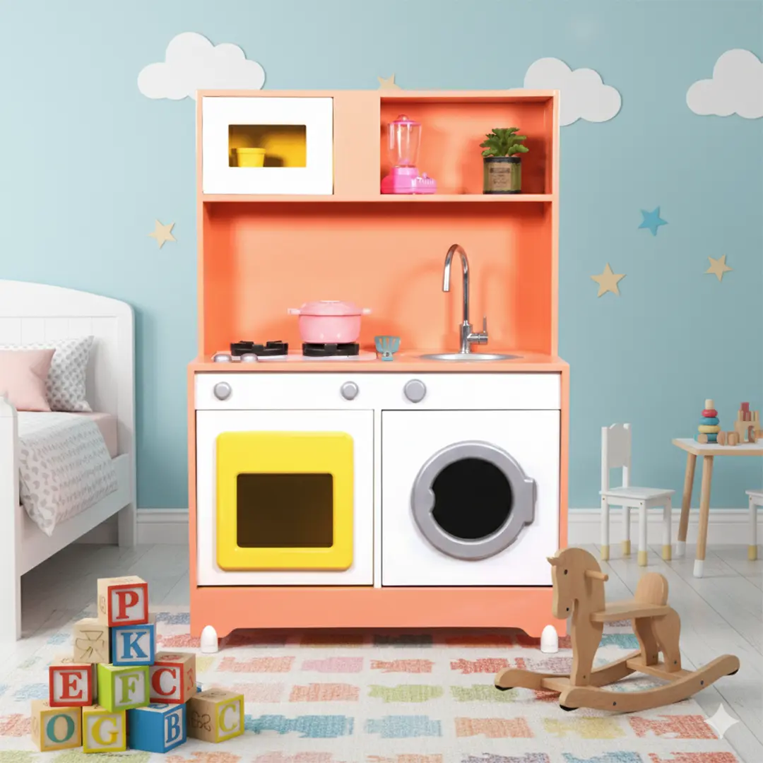 🧩 شامل اجزای کامل آشپزخانه کودک: سینک، یخچال، فر، اجاق گاز و ماشین لباسشویی